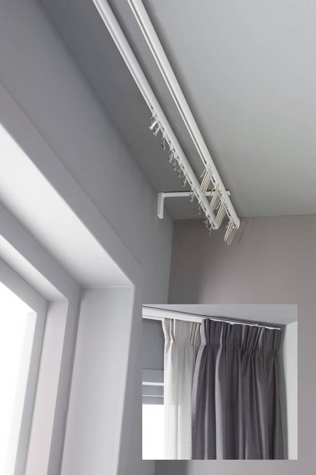 Höj gardinstången en bit mot taket för mer rymd. Gillar du mycket gardintyg, men har små fönster kan du passa på att trolla med gardinerna! Häng gardinerna ända uppifrån taket – det får takhöjden att upplevas så mycket högre. Inga fästen behövs, skenan har förborrade hål och skruvas direkt i tak. Skenan går inte att skarva, vid längre partier rekommenderar vi istället att du sätter två u-skenor parallellt vilka du kan skarva så långt du önskar.